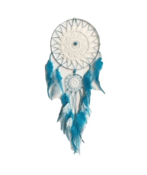 Vous avez besoin d’un attrape-rêves pour parfaire la décoration de l’intérieur de votre maison ? Voici qu’il vous faut, l’attrape-rêves plumes bleues et blanches, qui ne fera pas tâche dans le décor. En effet, la couleur blanche de cet objet est passe-partout, donc vous pourrez le mettre où vous le voulez. Et la couleur bleue vous permet d’avoir une touche plus fraîche pour une note aquatique. En plus d’être un bel objet de décor, cet attrape-rêves élimine vos mauvais rêves et attire la chance et le bonheur dans votre maison. De ce fait, si vous désirez offrir une ambiance classique à votre maison, cet objet est un choix judicieux.